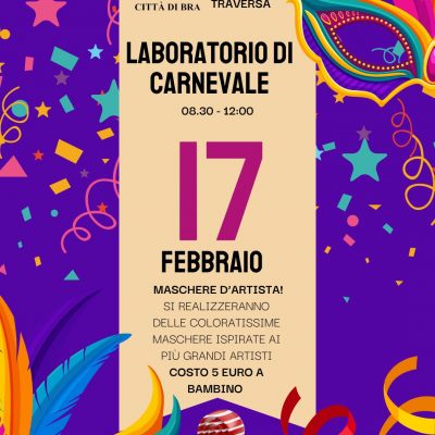 📍LABORATORIO DI CARNEVALE AL PALAZZO TRAVERSA PER BAMBINI DAI 6 AI 12 ANNI