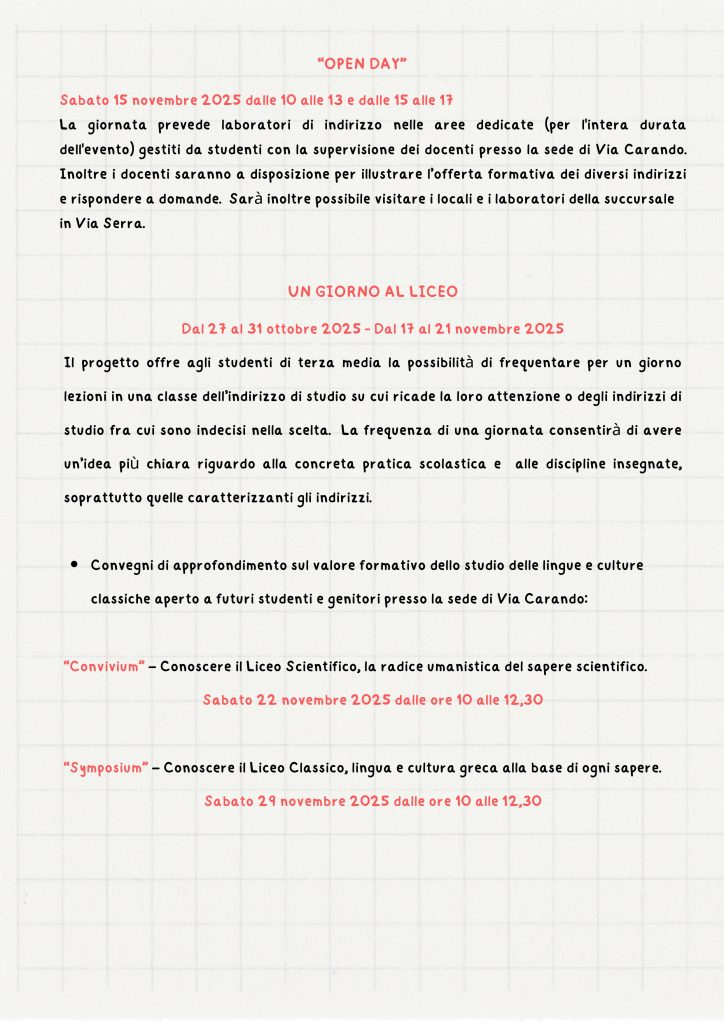 👉ascoltare la presentazione dei vari indirizzi di studio