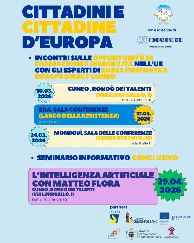 Partecipa agli incontri organizzati da Apiceuropa ETS conEures Piemonte e Europe Direct Cuneo!