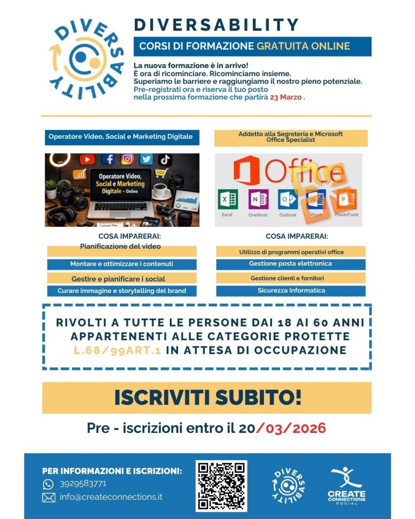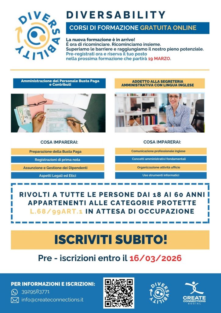 📢CORSI DI FORMAZIONE GRATUITI ONLINE L.68/99 ART1- MARZO 2026