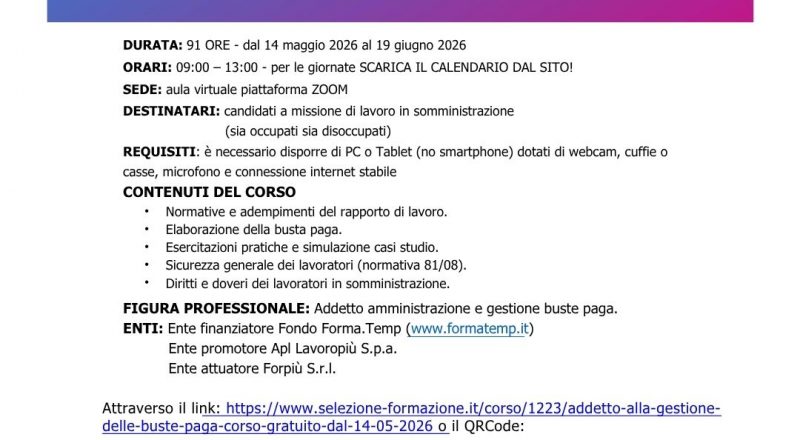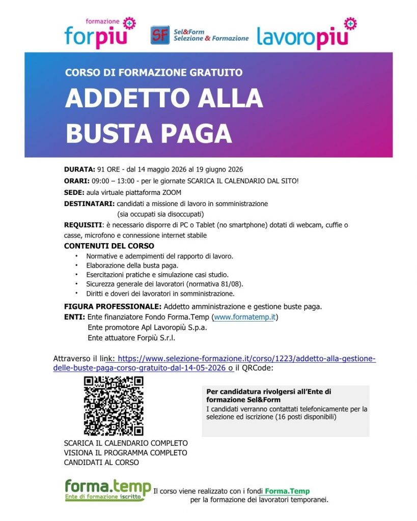 📢CORSO GRATUITO-ADDETTO ALLA BUSTA PAGA